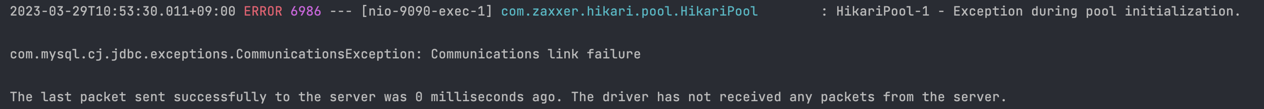com.mysql.cj.jdbc.exceptions.CommunicationsException: Communications link failure