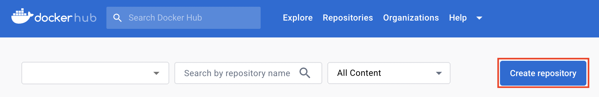 1) Docker hub에 로그인하고 Create repository 버튼을 클릭한다.
