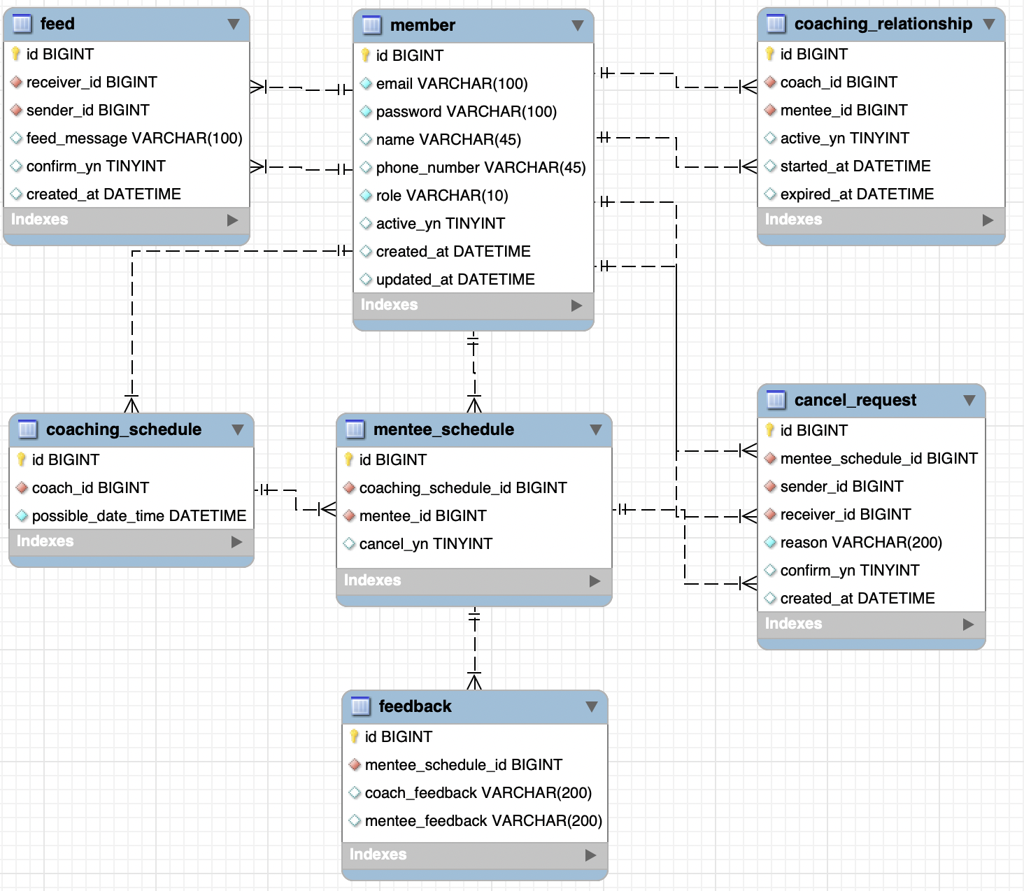 - coaching_schedule : 코치가 코칭 가능한 시간 정보가 담긴 테이블