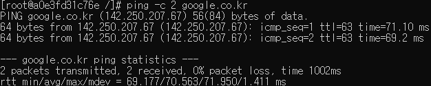 ping -c 2 google.co.kr