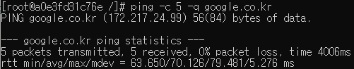 ping -c 5 -q google.co.kr