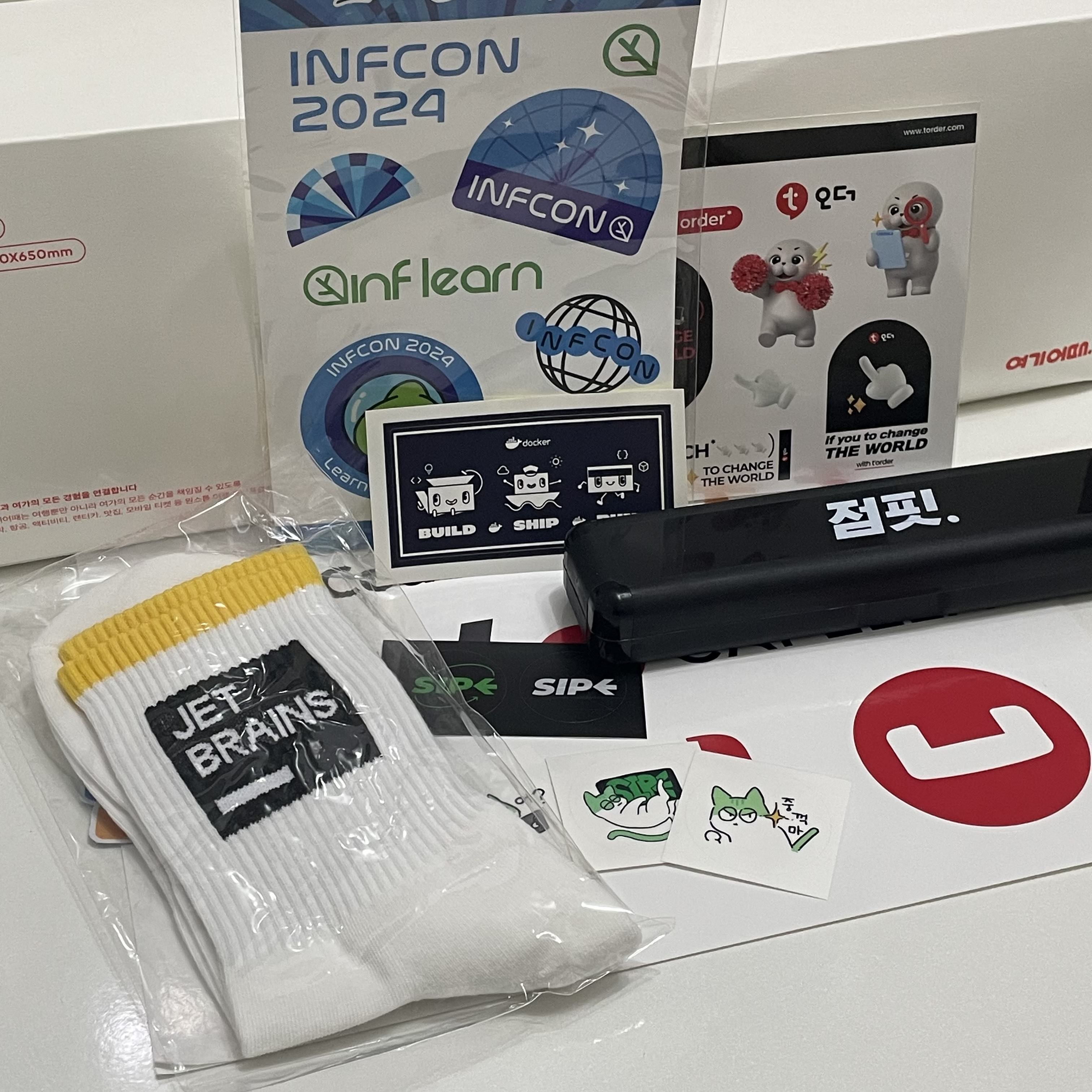 길이 무진장 길었던 무신사 부스에서 받은 굿즈와 여기어때 부스에서 받은 캠핑 의자를 포함한 여러 굿즈들을 받다 보니 어느새 나눠주신 가방에 짐이 한가득 채워졌다. 그리고 다행히도 이 짐들에 내가 다짐했던 인프런 굿즈도 포함시킬 수 있었다.