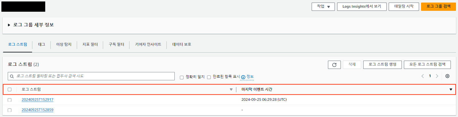 애플리케이션이 구동될 때마다 새로운 로그 스트림이 생성되며 내부에 로그가 적재되는데 간혹 빈 로그 스트림이 생기기도 한다.