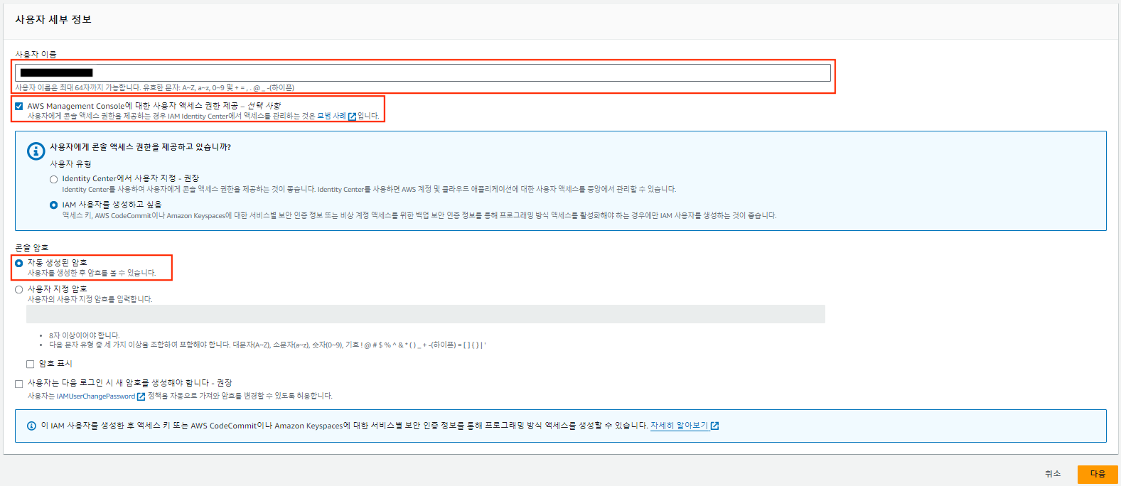 1️⃣ 사용자 이름을 설정하고 자동 생성된 암호를 사용하도록 한다.