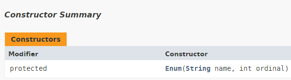 Enum 클래스는 기본적으로 protected로 지정된 단일 생성자만 존재한다. 외부에서 직접 생성자를 호출할 수 없기 때문에 상수가 새로 생성되거나 임의로 변경되는 것을 방지할 수 있다. 더불어서 Enum의 상수는 컴파일러에 의해 static과 final을 부여 받으므로 한 번 초기화된 이후로 불변함을 유지하게 된다.