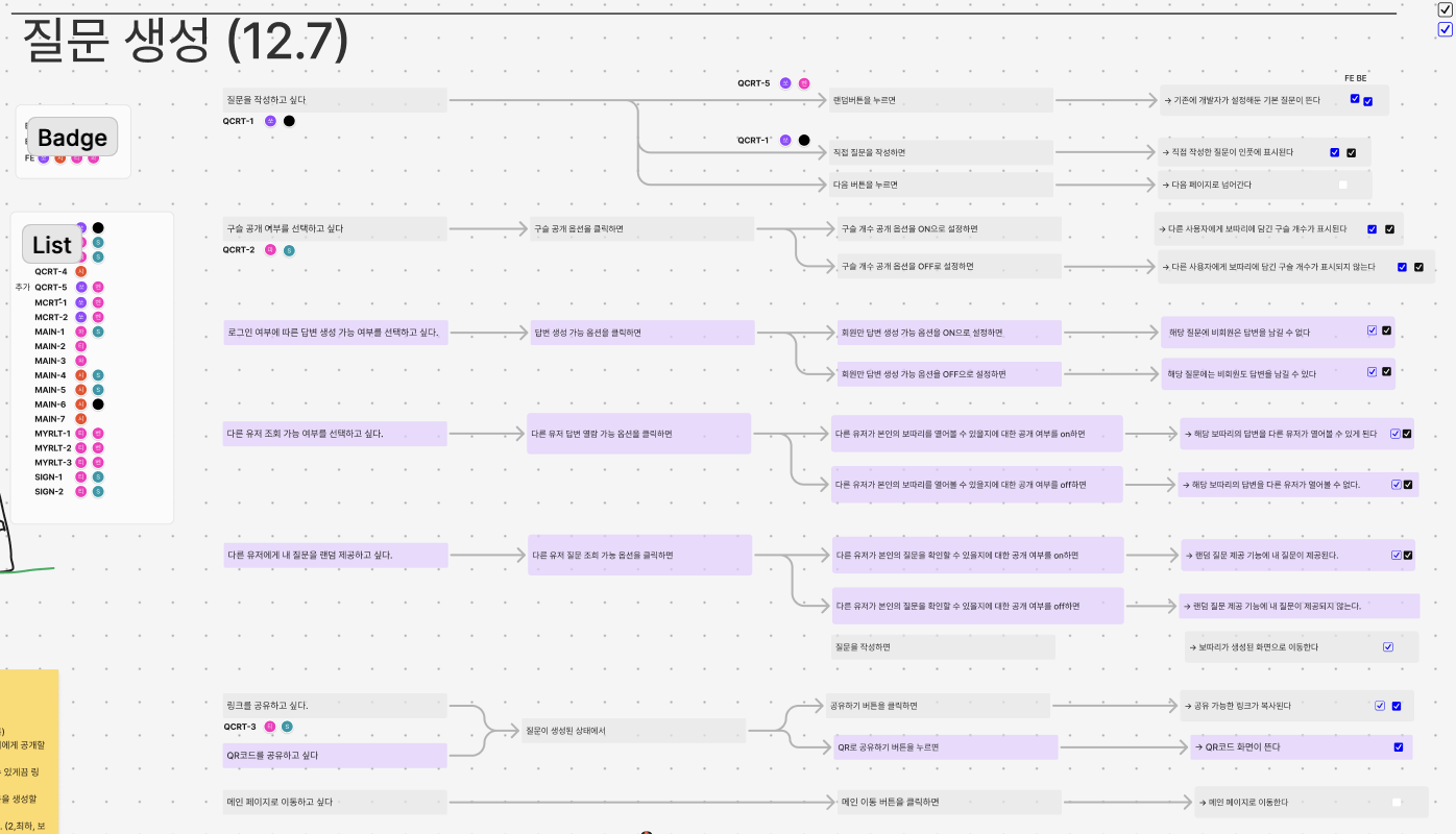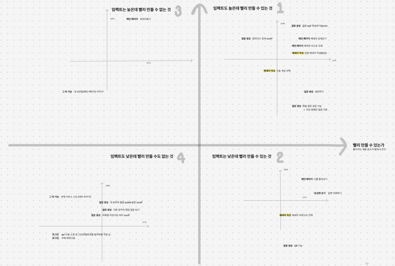 이후에는 PL 주도 하에 프로젝트 명, 팀 명 등을 정했고 그동안 늘어놓기만 했던 아이디어들을 도합해 우리 서비스의 기능 정의를 마쳤다.
