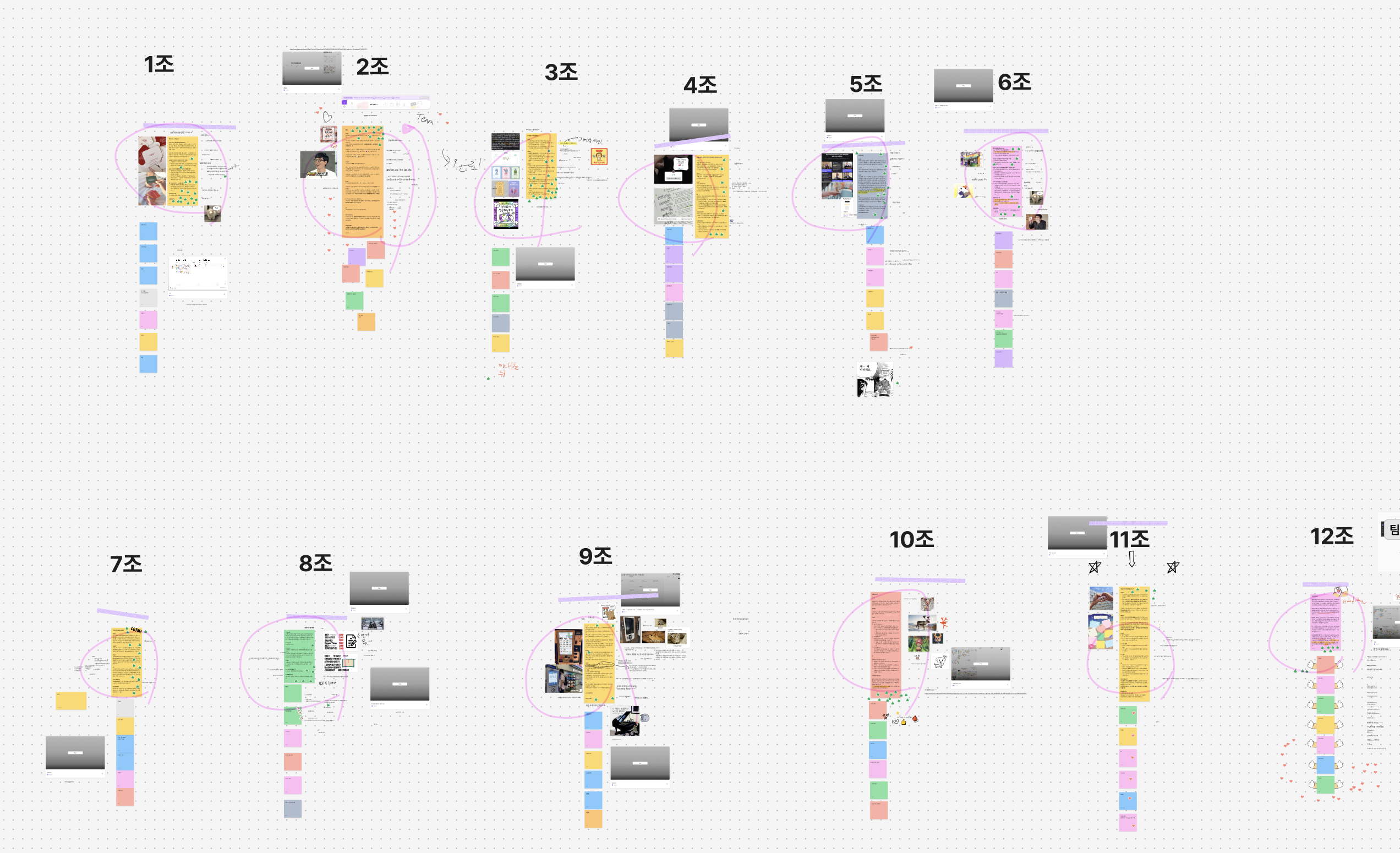 각자 가져온 아이디어를 설명하고 팀 빌딩이 이루어지면 팀 캔버스를 작성하는 날이다.