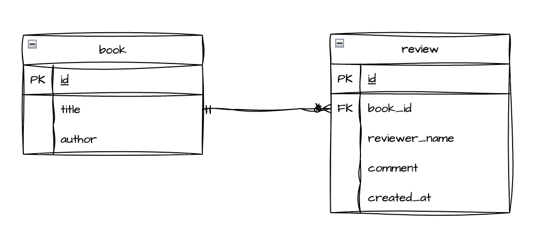 이번에는 일대다 관계인 book과 review 테이블로 원하는 데이터를 조회하는 방법이다.