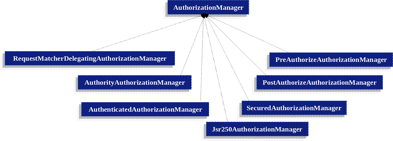 Spring Security는 자주 사용되는 인가 시나리오를 위해 이미 여러 AuthorizationManager 구현체를 제공하고 있다.