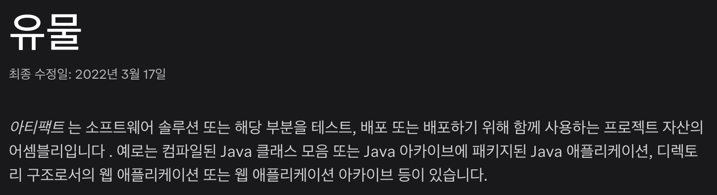 여담으로 Artifacts의 정의를 제대로 보려고 jetbrains 사이트에 들어갔는데 한국어 번역이 너무 귀여웠다.